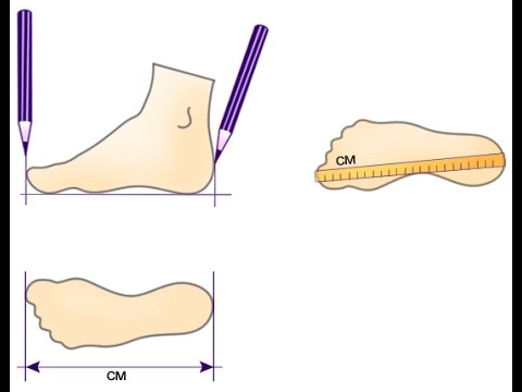 Поставьте ногу под прямым углом на чистый лист обведите ее карандашом. Затем линейкой измеряйте расстояние от большого пальца до пятки по самым дальним точкам, как на рисунке. Полученное значение нужно округлить до целого числа. К примеру, у Вас получилось 26,6 см, округляйте до 27 см. Если у Вас получилось ровное число, к примеру, 27 см, тогда прибавьте к нему еще 5 мм.